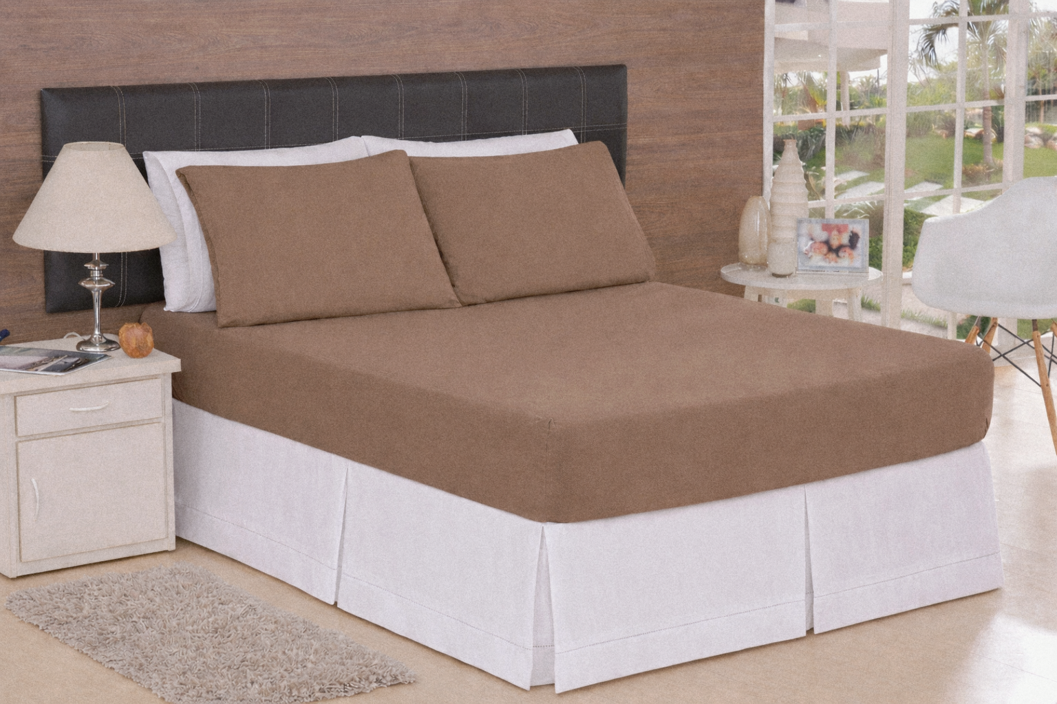 LENÇOL CASAL ESPECIAL DE MALHA 03 PEÇAS MOCHA MOUSSE - 1909