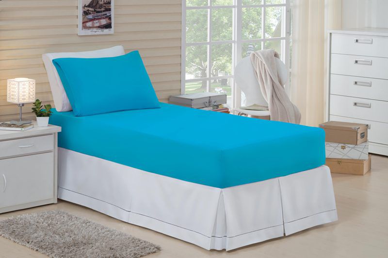 LENÇOL SOLTEIRO DE MALHA 02 PEÇAS AZUL TURQUESA - 1770
